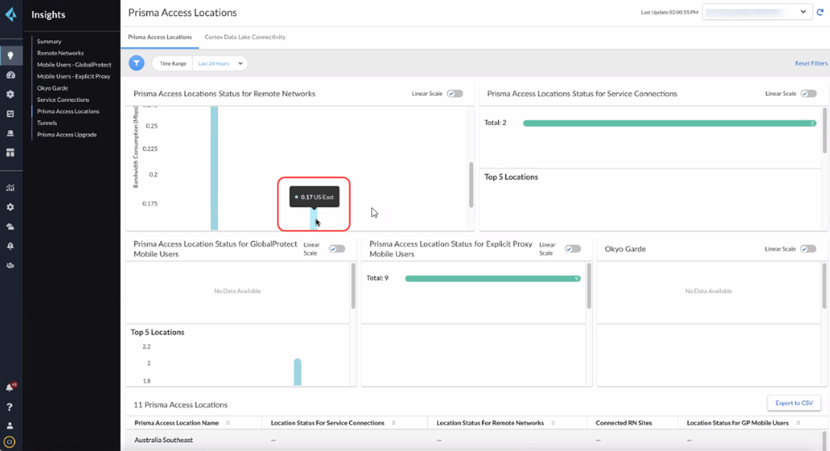 You can view remote network bandwidth for a specified Prisma Access location using the location_rn_bandwidth resource.